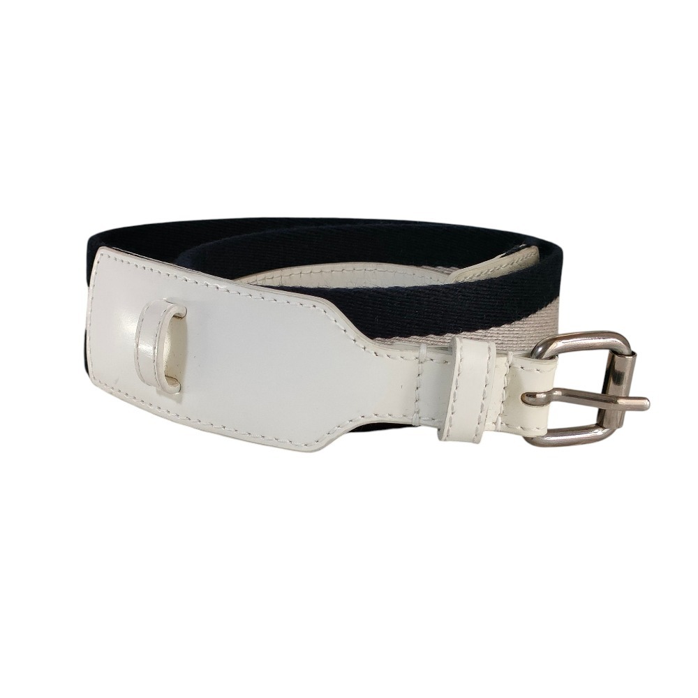 - 良品 BALLY バリー ストライプ レザー ファブリックコンビ ピンバックル ベルト ネイビー×ホワイト