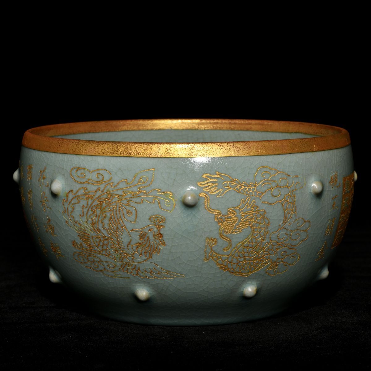 - 永し 宋時代 汝窯 包口塗金龍紋紋 鼓釘洗 古陶磁器 陶芸 皿 中国陶瓷器 唐瓷 置物擺件 古美術品 古賞物 収集 旧家蔵出 中国唐物