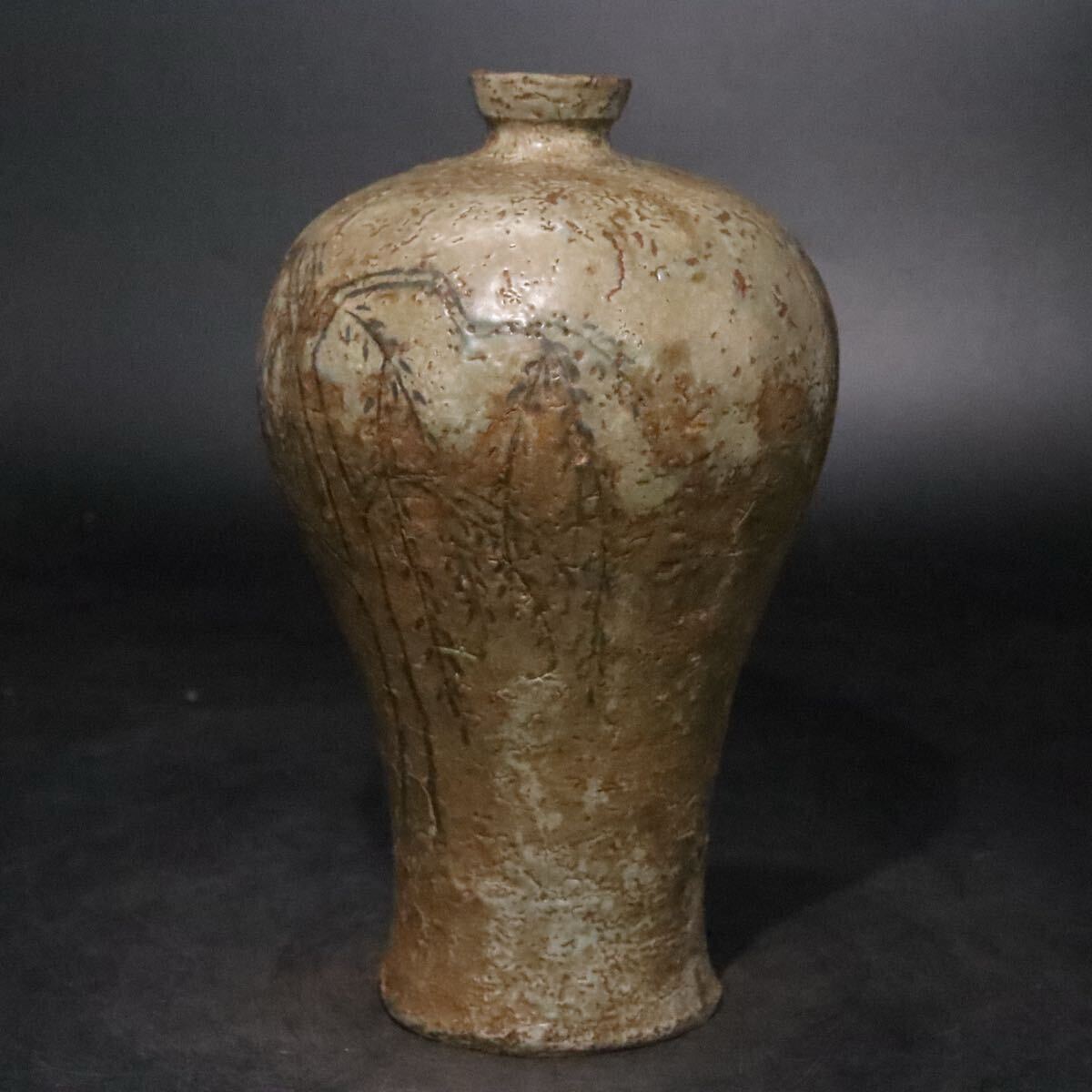 - 時代 高麗青磁 鉄絵 柳図 梅瓶 / 朝鮮古美術 粉青沙器 青磁 壺 花瓶 .B1399