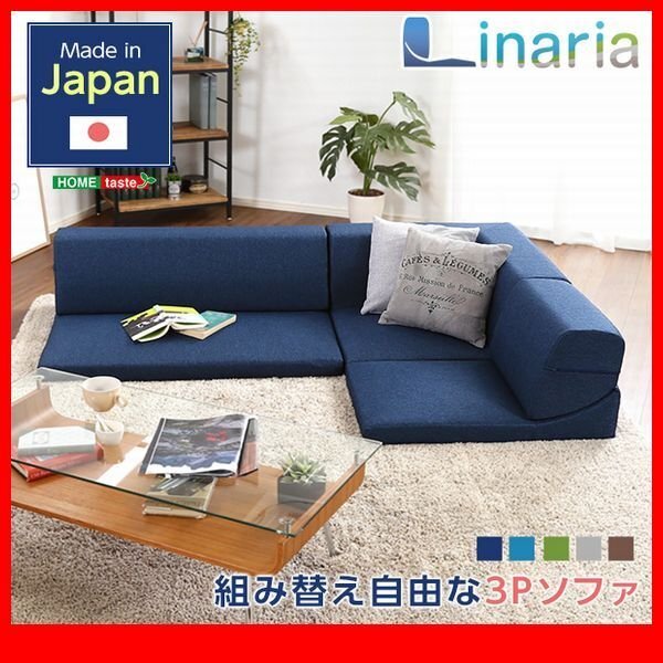- ソファ★組み替え自由なフロアソファ 3人掛け ロータイプ/リクライニング ローテーブル こたつで/日本製 布地/茶 緑 灰 濃紺 青/新品/zz