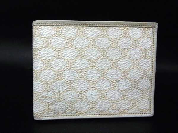 > CELINE セリーヌ マカダム柄 PVC×レザー 二つ折り 財布 ウォレット 札入れ 小銭入れ カード入れ レディース アイボリー系 DI9187