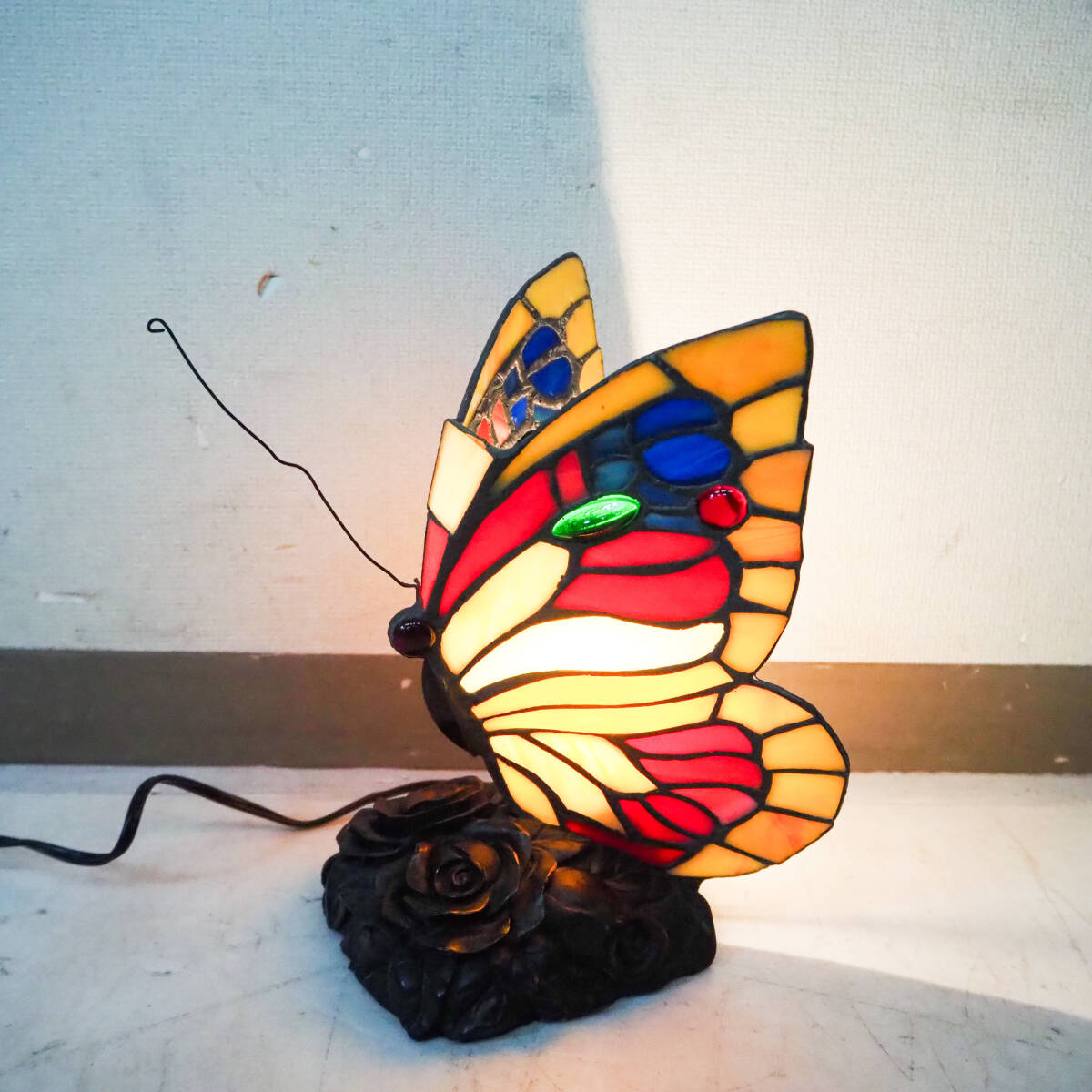 - バタフライテーブルランプ 1灯 ステンドグラス ティファニースタイル 薔薇と蝶 ベッドサイドスタンド ナイトライト 間接照明 S1872