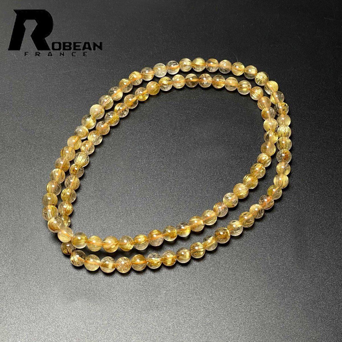 > 貴重 EU製 定価11万円★ROBEAN・タイチンルチル★黄金針水晶 ゴールド 金運 開運 3本巻きブレスレット パワーストーン 5.8-6.2mm M081197