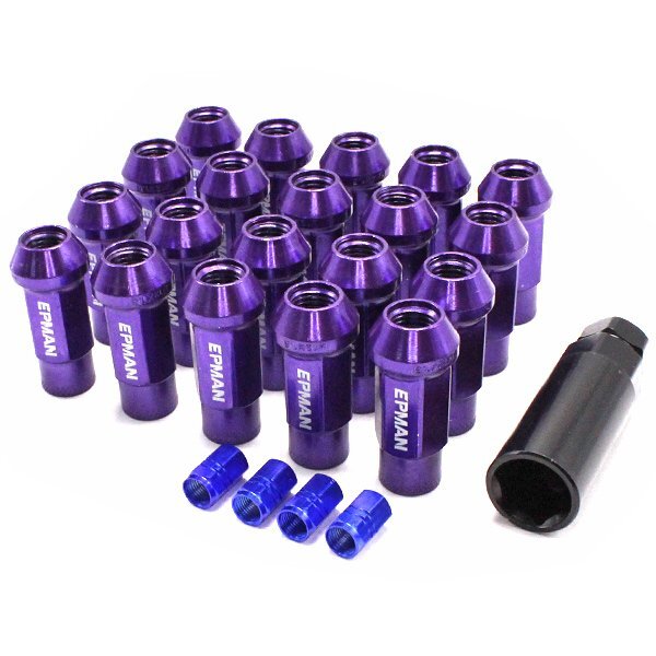 > ホイールナット M12×P1.5 20個 スチール製 ロング 貫通型 自動車 レーシングナット トヨタ ホンダ マツダ 等 紫 パープル 送料無料