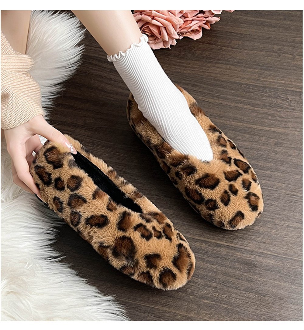 - ファーパンプス パンプス レディース 靴 ぺたんこ フラット フラットシューズ ローヒール ラウンドトゥ ヒョウ柄/24cm hw1384.3.24cm