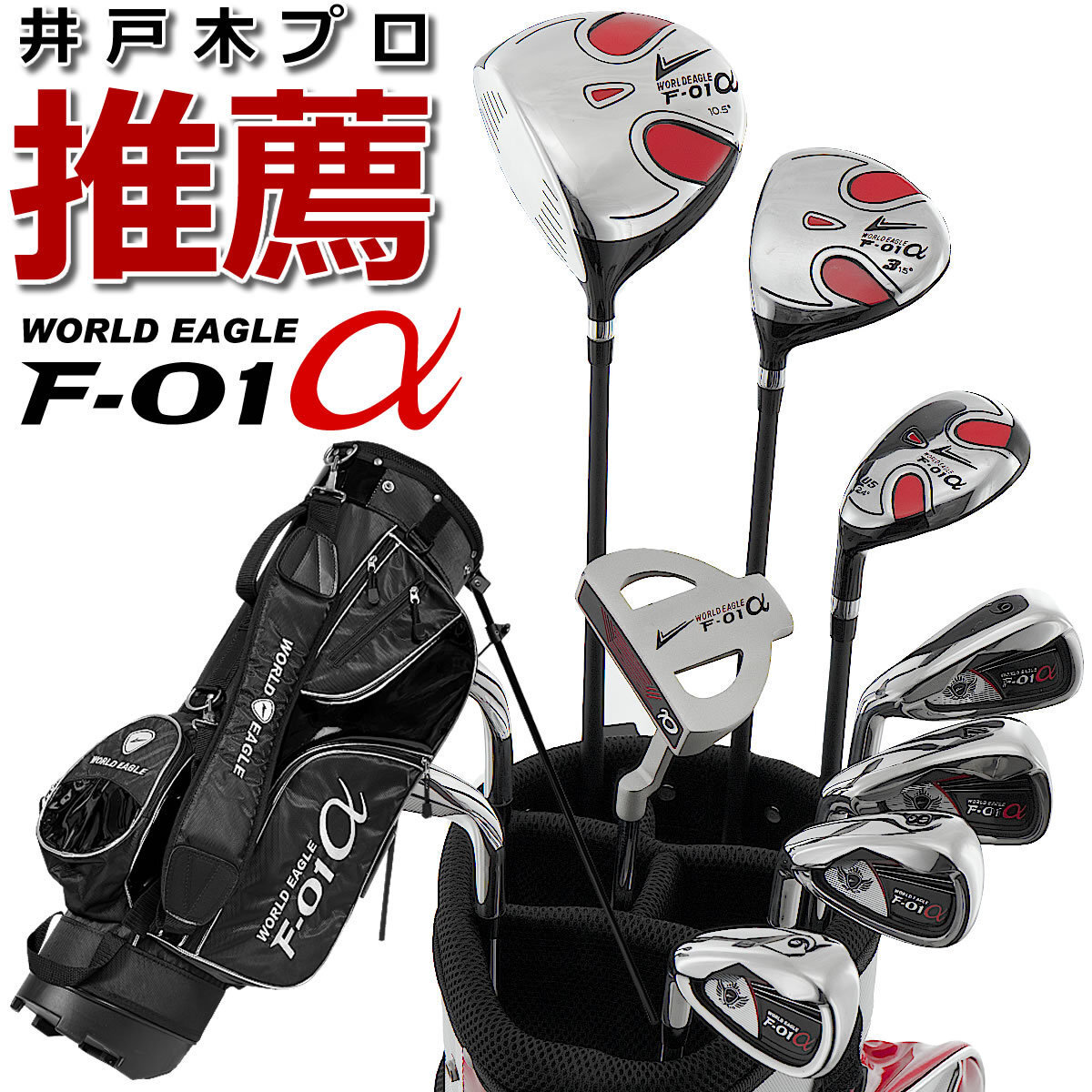> F-01α メンズゴルフクラブセット スタンド式軽量キャディバッグ付 左利き用 フレックスR/バッグ:ブラックカラー[34539]