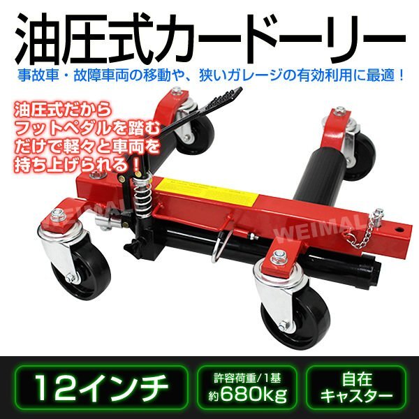 - 未使用 カードーリー 油圧式 耐荷重680kg 【12インチまで対応】 タイヤドーリー ホイールドーリー ゴージャッキ 車移動 車両移動