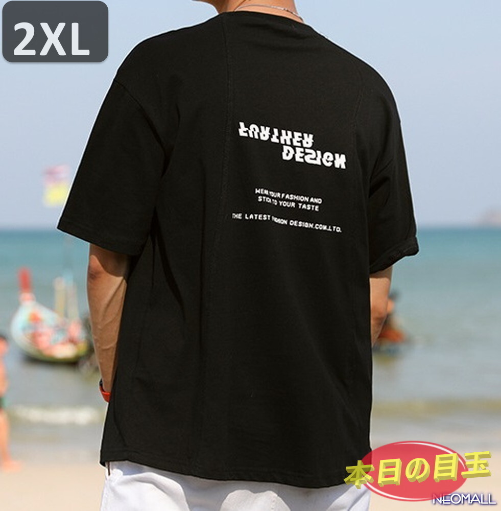 > 本日のお買得 ☆ 丸首 半袖 Tシャツ【472】 ブラック 2XLサイズ トップス シャツ シンプル イラスト デザイン 春夏