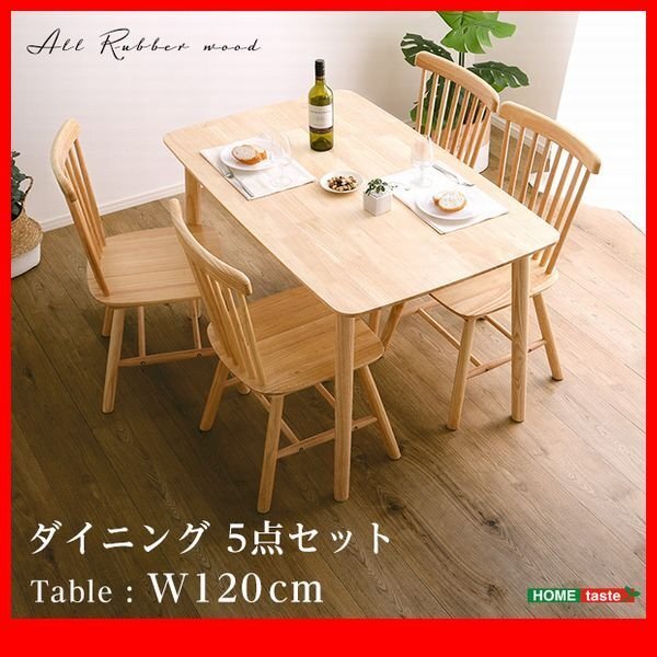 - ダイニングセット★新品/ダイニング5点セット 120cm幅/テーブル 椅子×4/天然木 ラバーウッド集成材/ナチュラル/zz