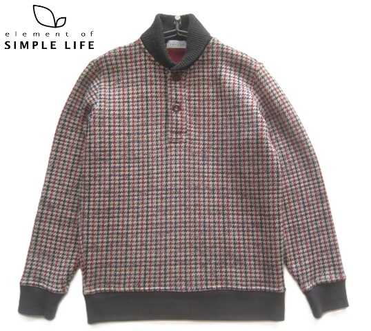 - 美品!!SIMPLE LIFE D'URBAN*丸襟ヘンリーネック 千鳥柄 フリーススウェット S シンプルライフ ダーバン