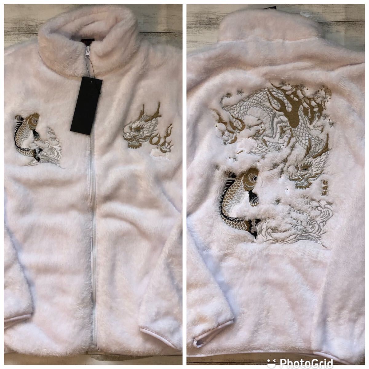 - タグ付き新品 未使用 L ボアフリース スカジャン スーベニアジャケット 和柄 龍鯉波 ホワイト