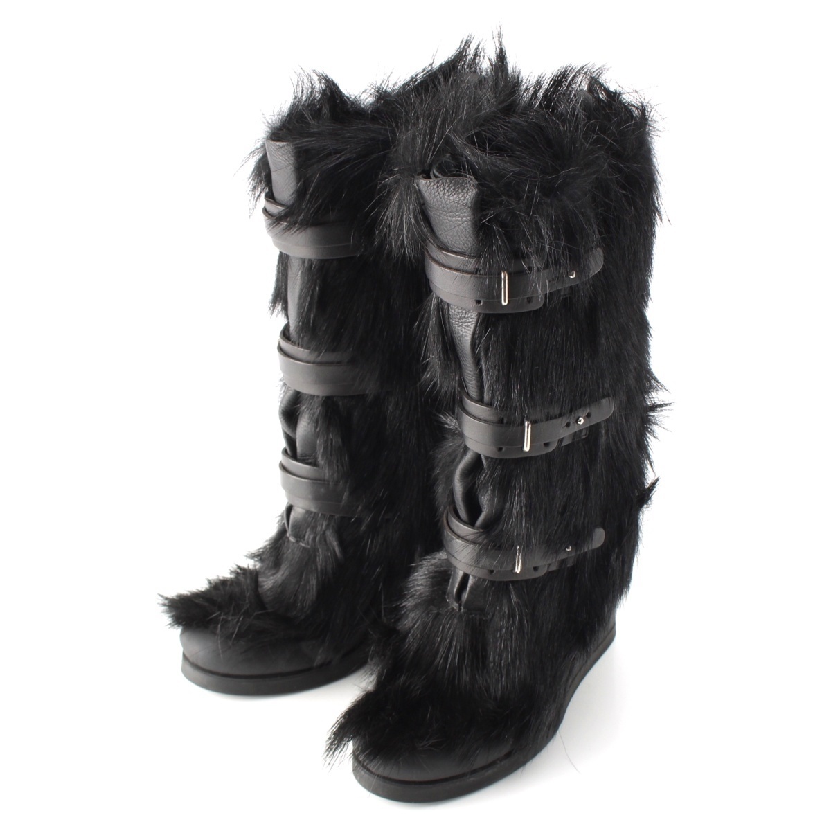 - セリーヌ フィービー期 ファー ベルテッド ロング ブーツ ブラック 36【中古】