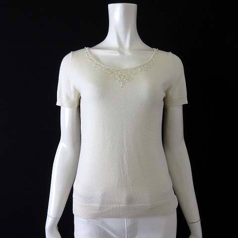 > インディヴィ INDIVI ニット セーター ビーズ パール装飾 ウール ストレッチ 半袖 M 38 オフ白 アイボリー レディース