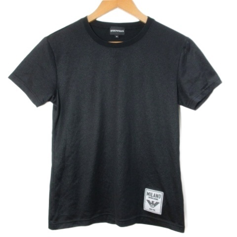 > エンポリオアルマーニ EMPORIO ARMANI Tシャツ カットソー 日本製 総柄 ワッペン クルーネック M 黒 ブラック /X メンズ