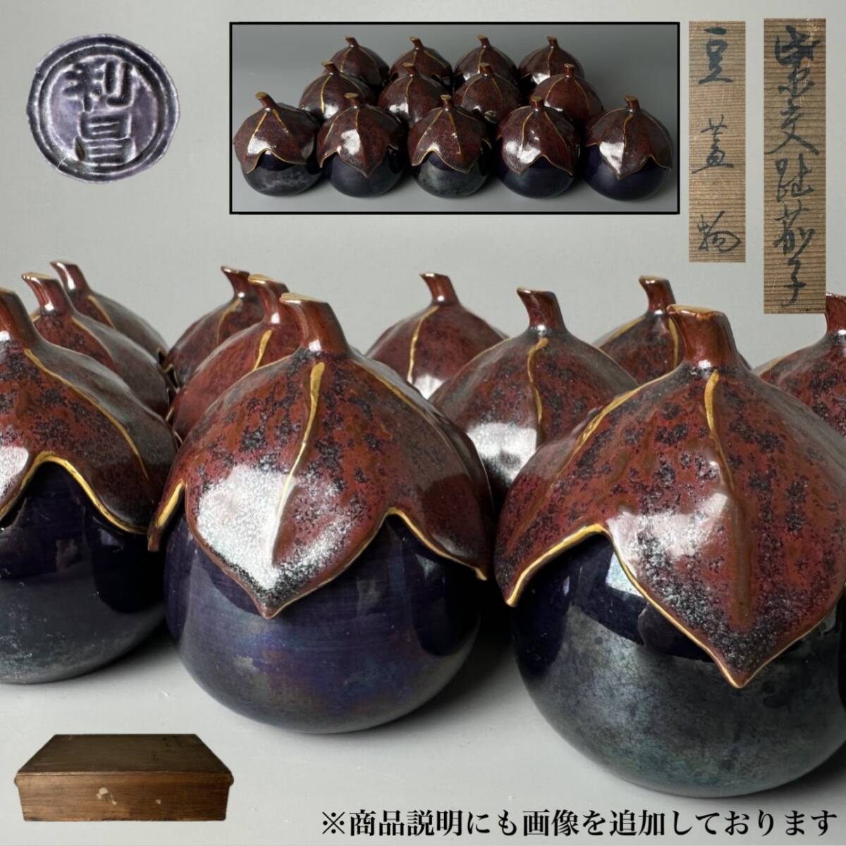 - コレクター買取品 利昌 造 紫交趾茄子 豆蓋物 十三客 在銘 木箱付 金彩 向付 懐石料理 割烹旅館 和食器 飾物 置物 時代物