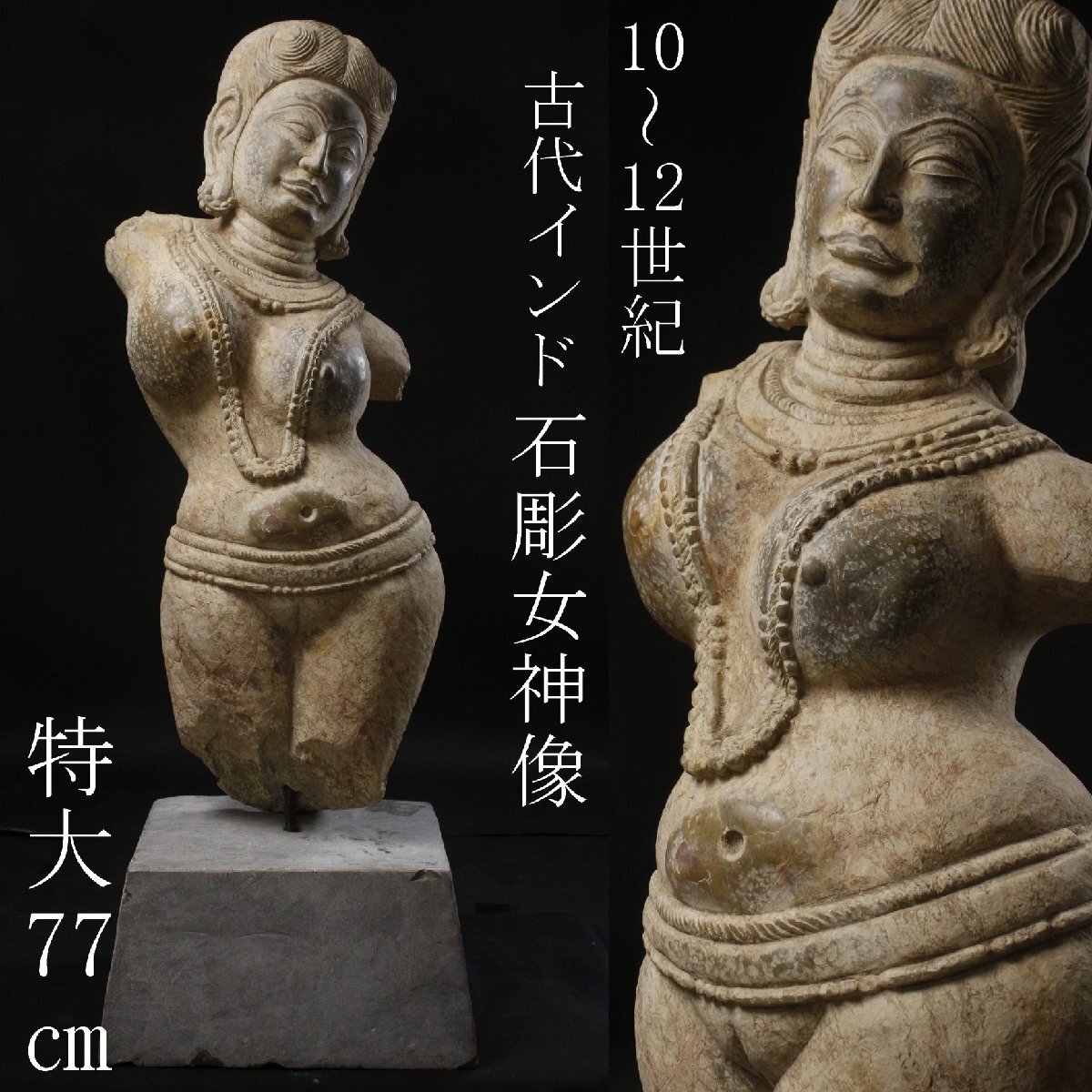 > 【LIG】10~12世紀 古代インド 石彫 女神像 特大77㎝ 総重量60kg 細密彫刻 コレクター収蔵品 [.QEW]25.9
