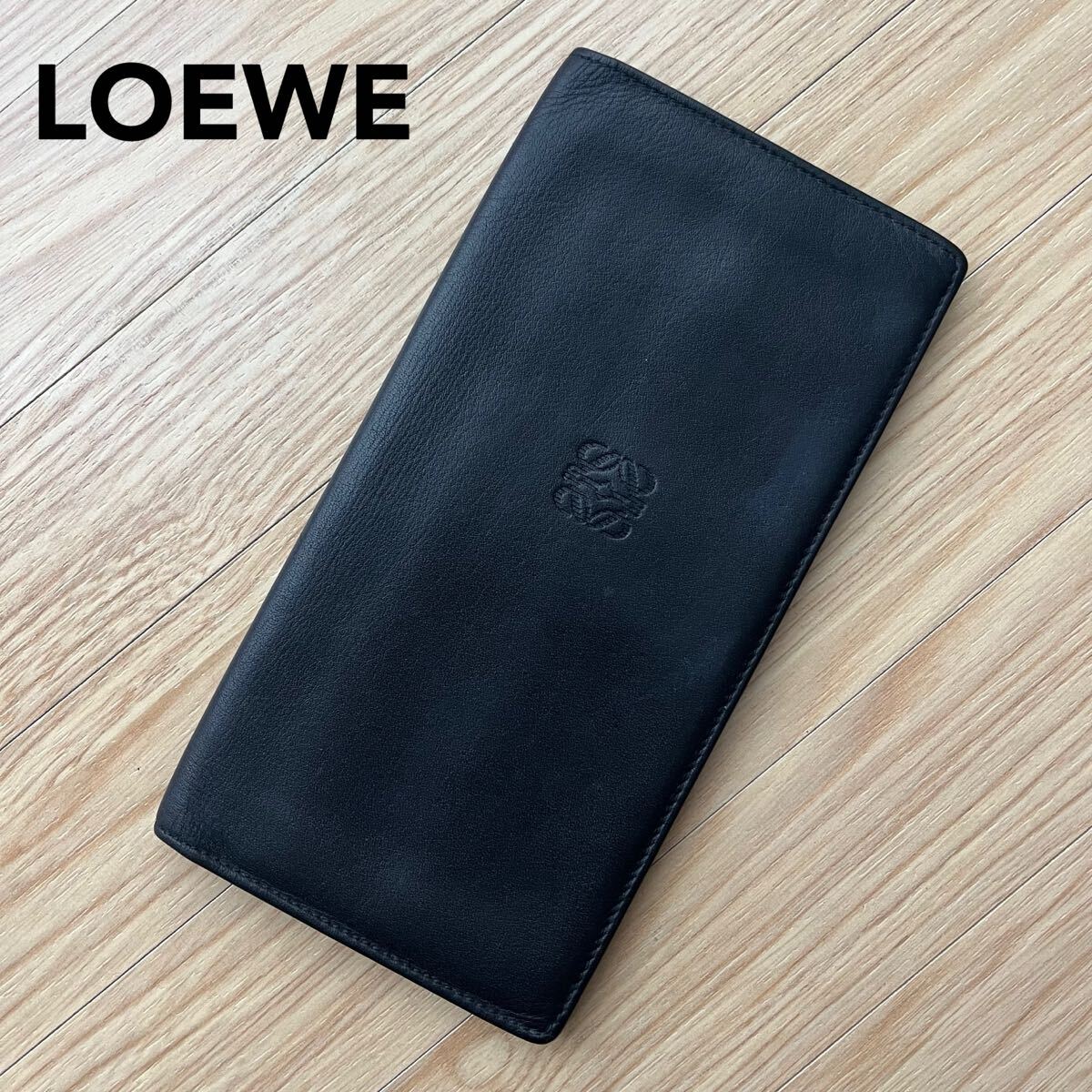 > LOEWE ロエベ 長財布 アナグラム ウォレット 二つ折り レザー ブラック 黒