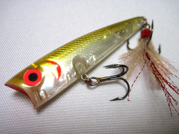 - ゴールド《REBEL》チャグR【CHUG-R 8cm】_スーパーポップRと同サイズ『オールドレーベル』反射板入り クリア『ポッパートップウォーター』