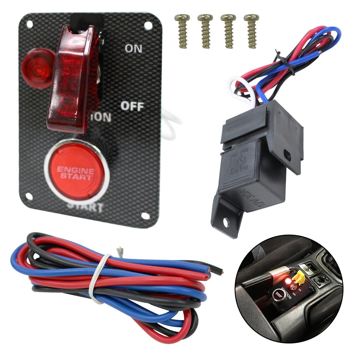 - 汎用 12V ミサイルスイッチ イグニッション プッシュスイッチ エンジン スタート スポーツカー オフロード カーボン調