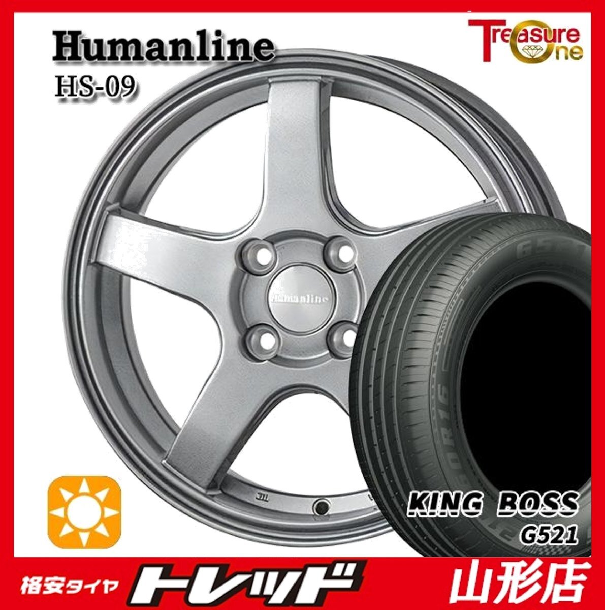 > 山形店 新品 夏タイヤホイール4本セット ヒューマンライン HS-09 15インチ 5.5J 4H100 +43 DG KINGBOSS G521 185/60R15 2025年製 ヤリス