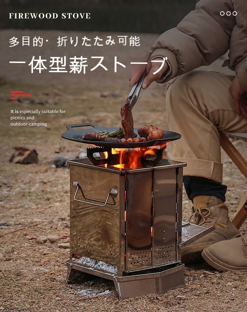 - 焚き火台 コンロ 1台多役 折りたたみ式 簡単組立 ソロ たき火台 グリル 軽量 ステンレス 専用収納ケース付き アウトドア キャンプ LZ002