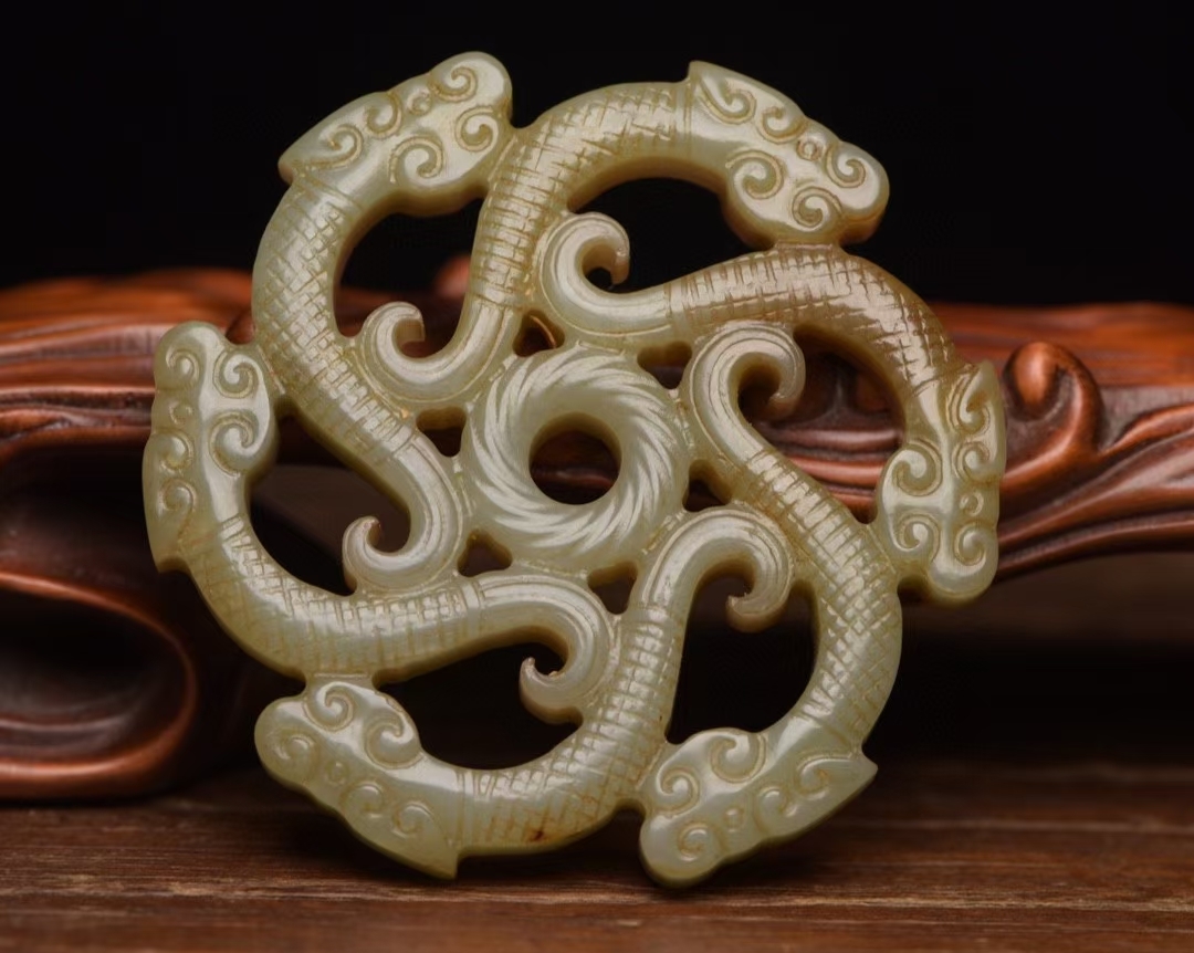 - 旧蔵 和田玉彫 龍 跟付 中国古玩 骨董品 時代物 稀少唐物