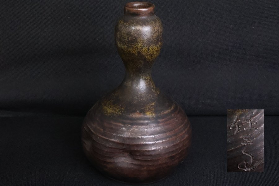 - TB526備前 瓢箪徳利◇陶印有/保命酒?/備後/鞆の浦/酒器/飾壺/花瓶/花器/床飾/陶器/焼物/工芸/時代/骨董/古美術/古道具タグボート