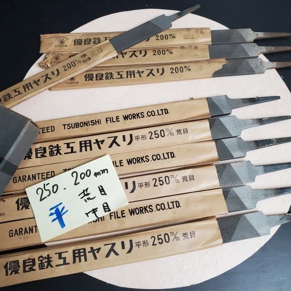 - 【アウトレット品】 ツボ西 ツボヨネ 優良 鉄工用 ヤスリ 平 250、200㎜ 荒・中目 計10本セット 鑢 バリ取り 鉄工ヤスリ やすり sp-032-583