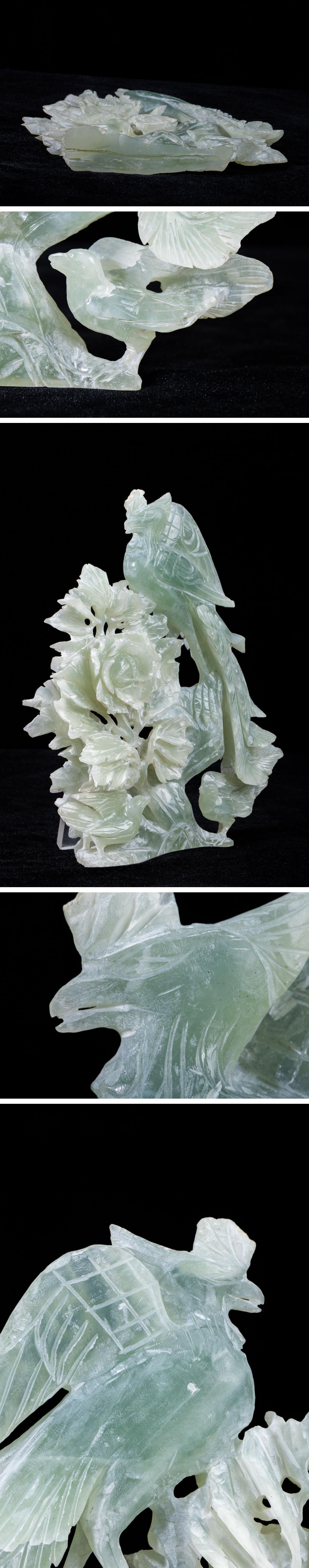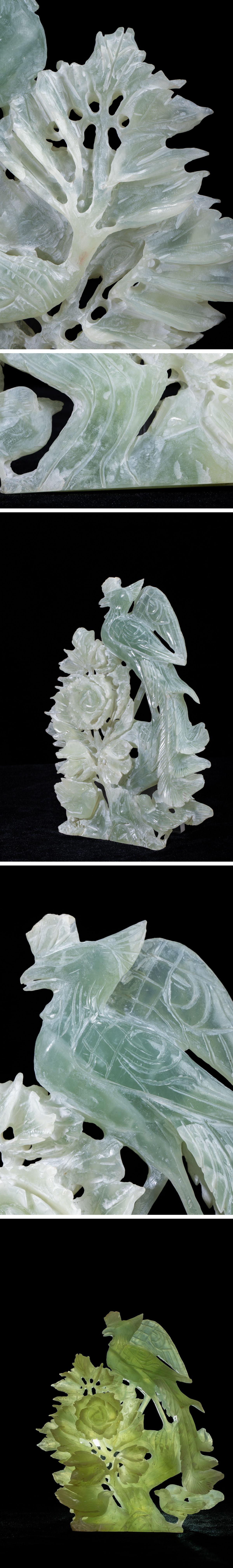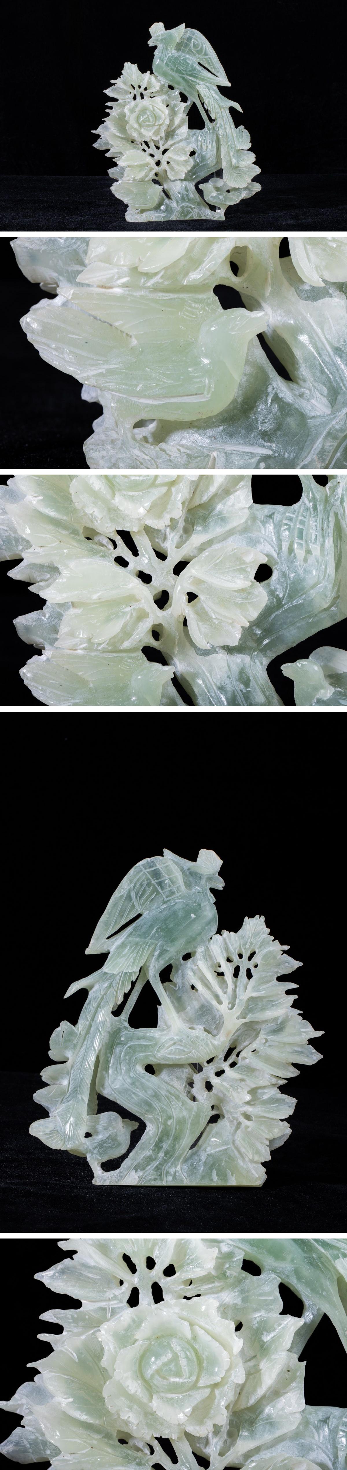 - 【珍品堂】1円から N19-V4 天然石 玉石 水晶 花鳥彫 細密彫刻 透かし彫 重1425g 縁起物 時代物 鑑賞石 コレクション 工芸品 骨董品 古美術