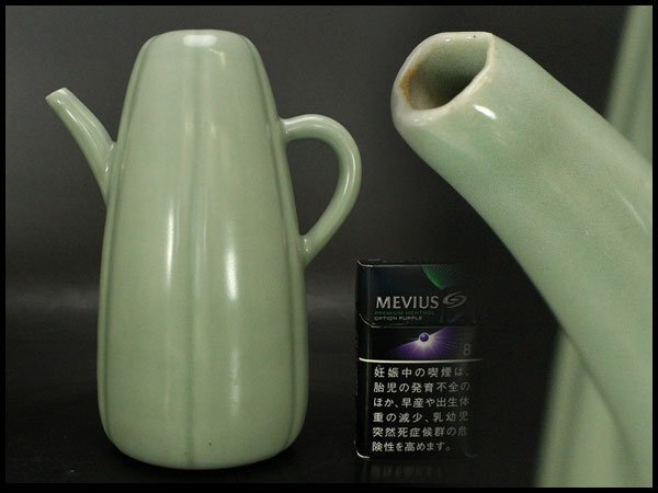 - 【銀閣】高麗 李朝 青磁 水注 高19cm 旧家蔵出 送料無料(RC832)