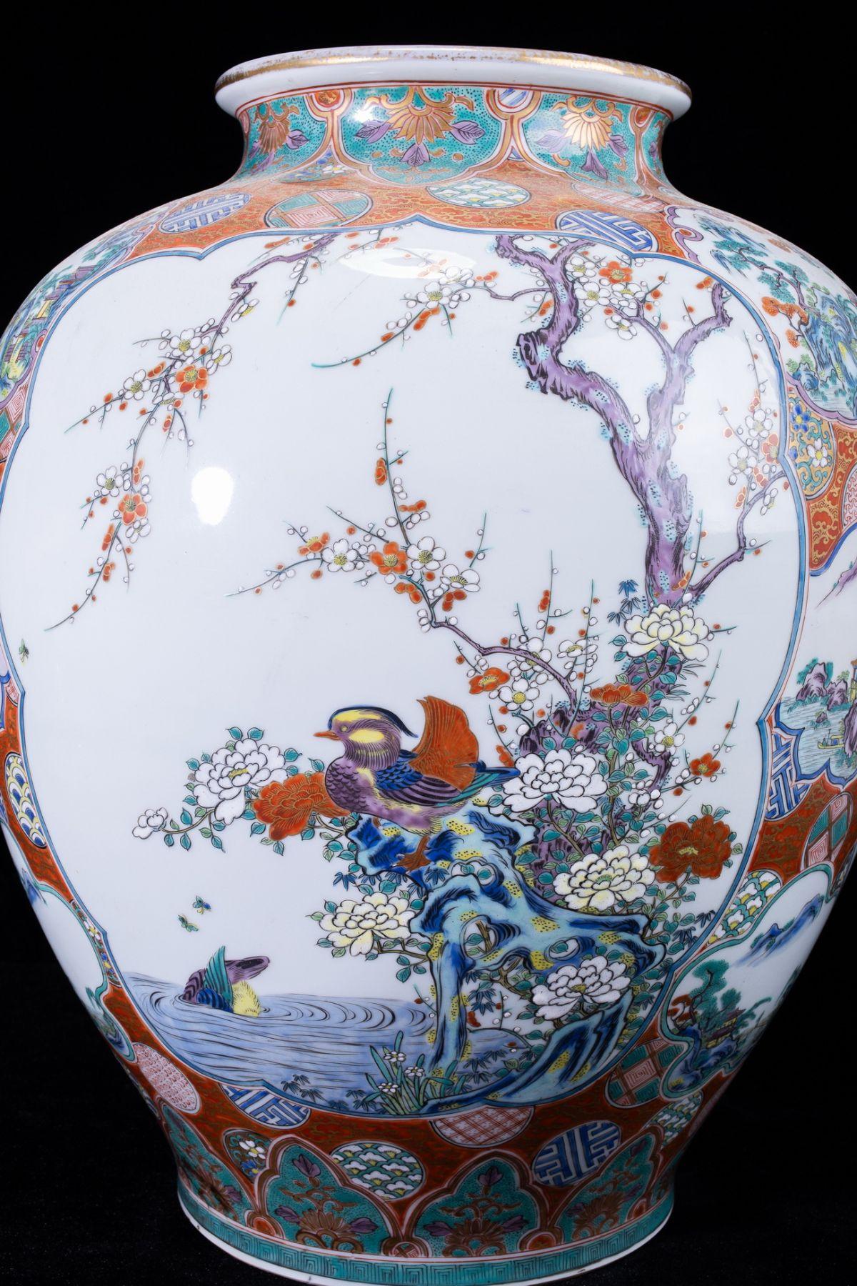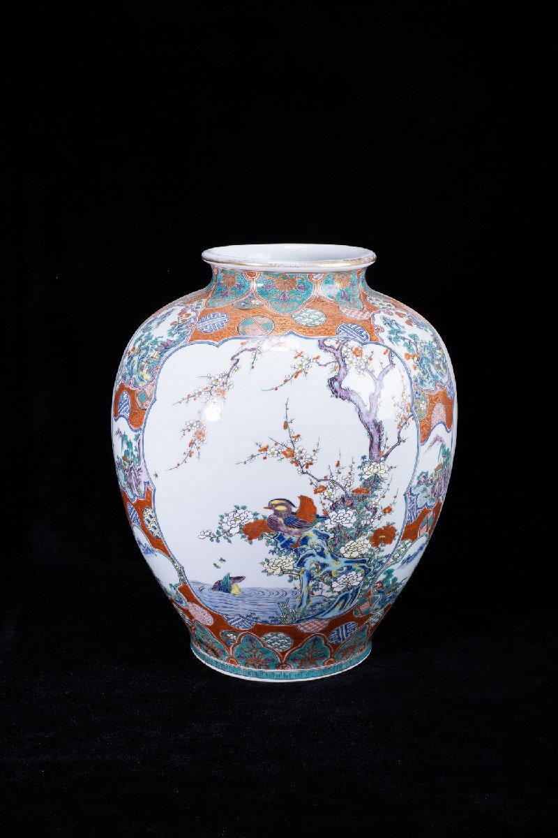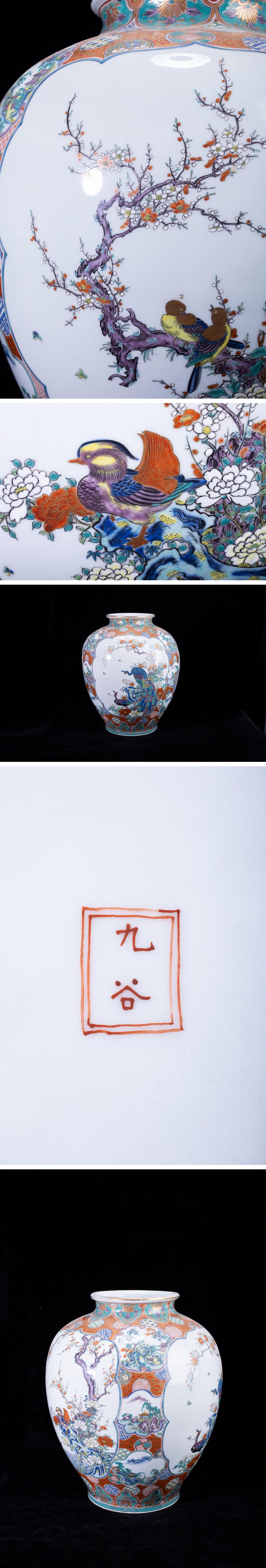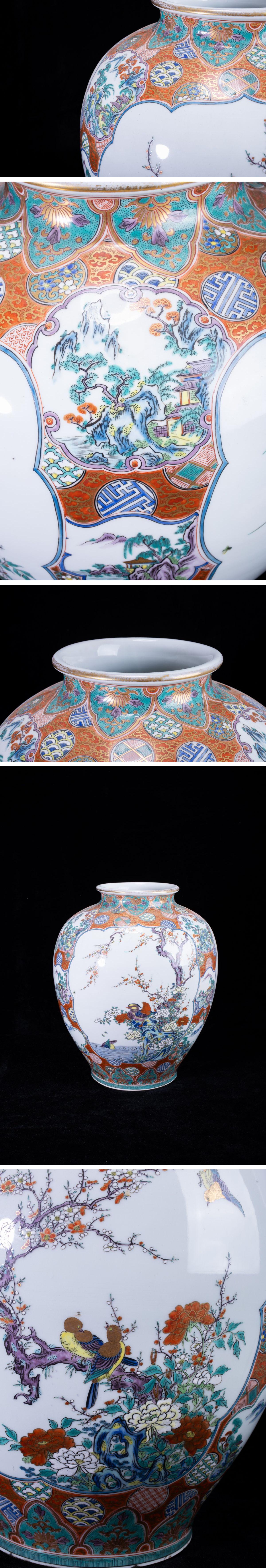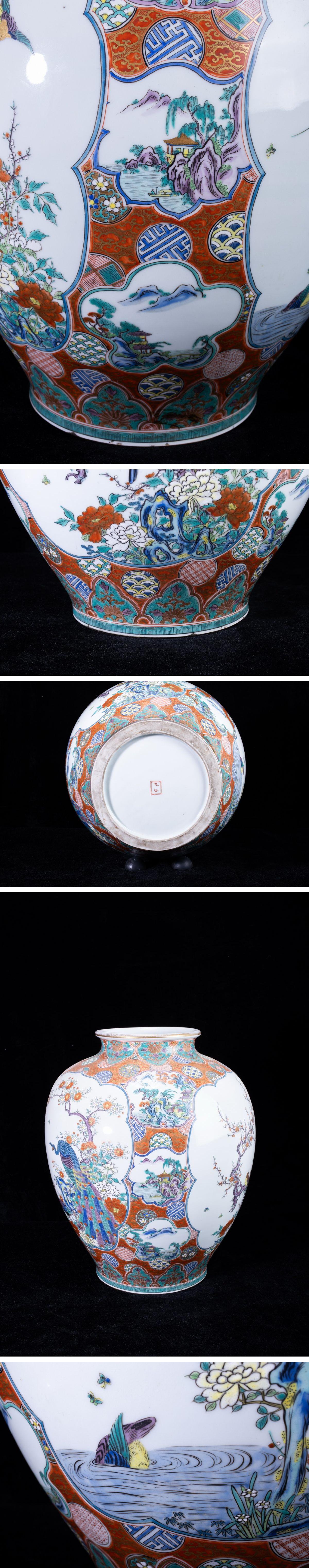 > 【珍品堂】1円から N5-V5 九谷焼 金彩 色絵 孔雀 花草文 景色図 細密絵付 花瓶 高45㎝ 大花瓶 時代物 工芸品 鑑賞品 骨董品 古美術