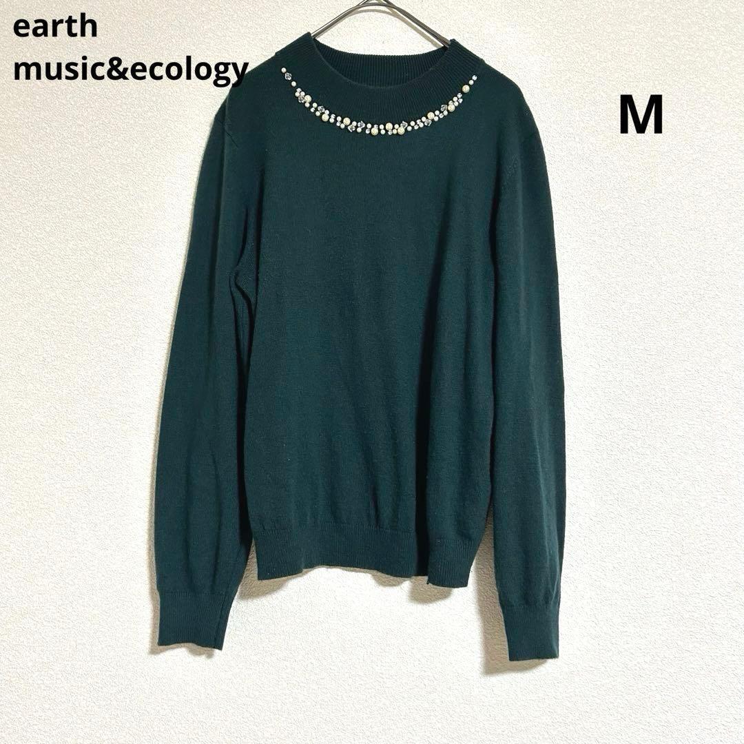 - earth music&ecologyグリーン ハイネック長袖ニット パール