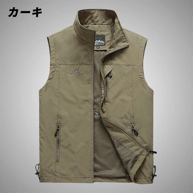 - 春夏 作業着 農業 仕事 日用大工 ベスト メンズ 男女兼用 レディース アウトドア 通勤 登山 釣り カーキ M