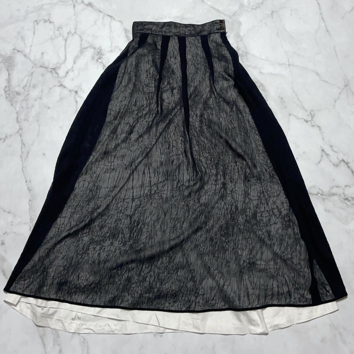 > モワメームモワティエ Moi-meme-Moitie シアー レイヤード風 裏地付き 日本製 ブラック 黒 フレアスカート ロングスカート 9サイズ