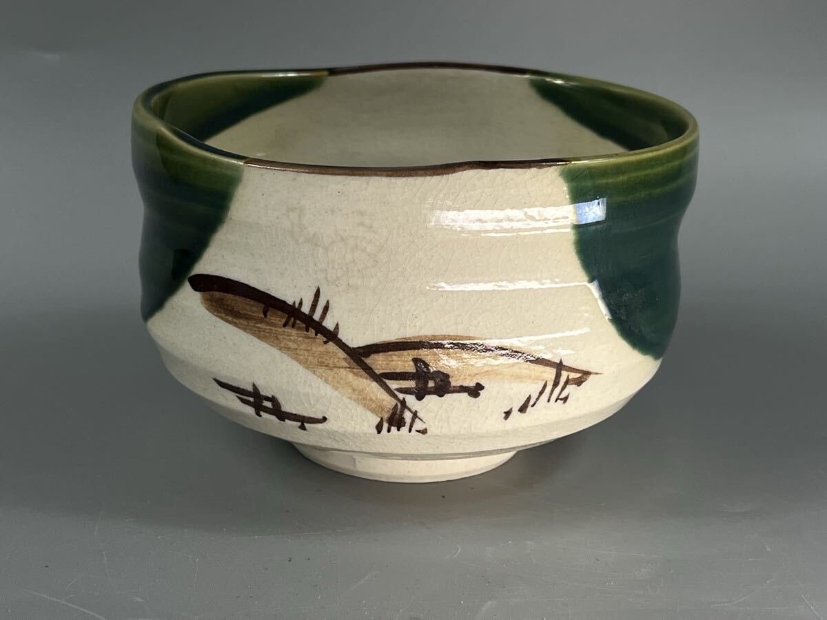 - 美濃焼 織部焼 抹茶碗 在銘 松林 茶道具 茶碗【博圓】径12cm