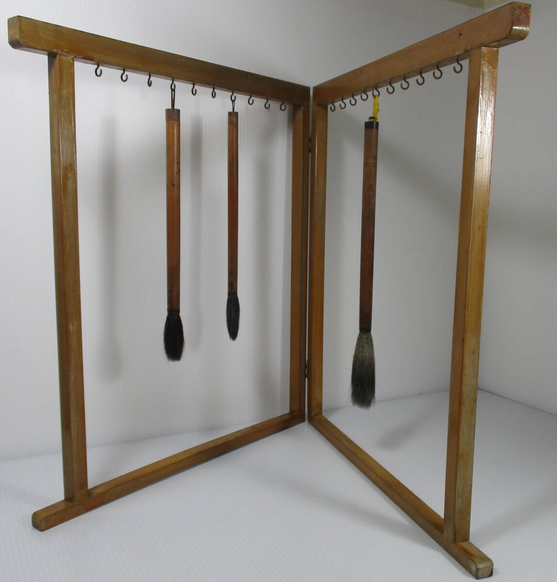 - S-1211 木製の折りたたみ式 書道筆スタンド 吊り下げ 20本掛け 42X37(74)㎝