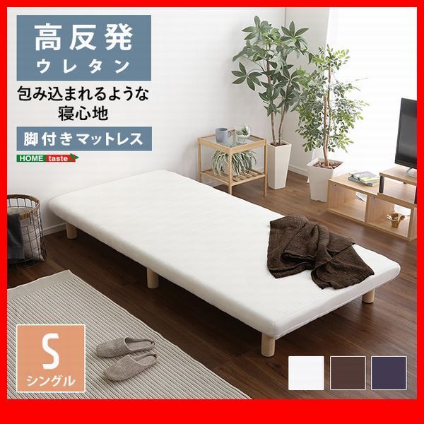 > ベッド★脚付きマットレスベッド/シングル 高反発ウレタン ロールマットレス すのこ構造 天然木脚/ブラウン ネイビー ホワイト/zz