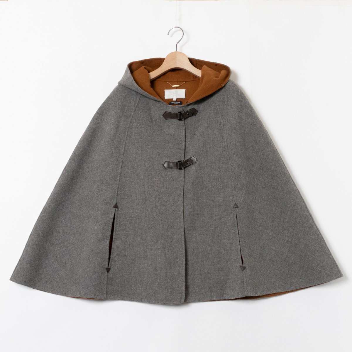 - 自由区 ジユウク フードポンチョコート 38サイズ 羊毛 アンゴラ グレー 綺麗め カジュアル ベルト アウター ケープ 秋冬 婦人 レディース