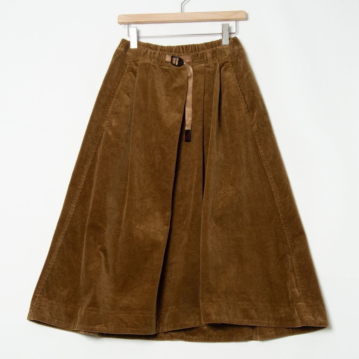 > 【1円スタート】GRAMICCI グラミチ コーデュロイテイルカットスカート M GLSK-21F050 ウエストゴム&ベルト ミモレ丈 キャメル 黄土色