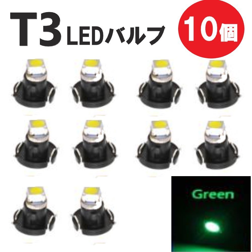 > T3 LED 12V バルブ 10個 グリーン メーター球 ウェッジ ランプ SMD 新品 交換用 ドレスアップ 電球 定形外郵便で発送