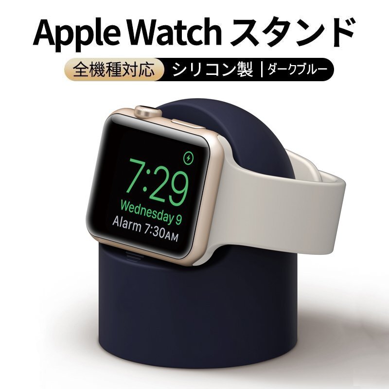> Apple Watch アップルウォッチ 充電 スタンド 充電器 純正ケーブル アクセサリー シリコン 卓上 ダークブルー