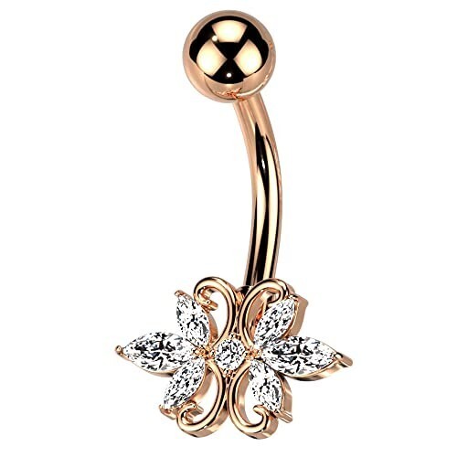 - HSP 14G ヘソピアス ピンクゴールド CZ ハート バナナバーベル サージカルステンレス