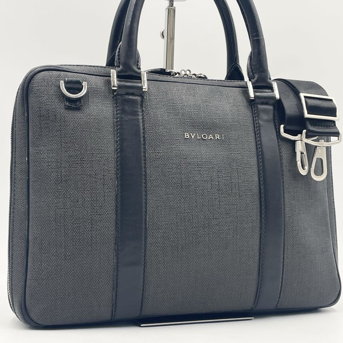 - 【美品】BVLGARI ブルガリ ウィークエンド ブリーフケース 2way メンズ ビジネスバッグ 書類 ヘリンボーン ショルダーバッグ A4可 通勤