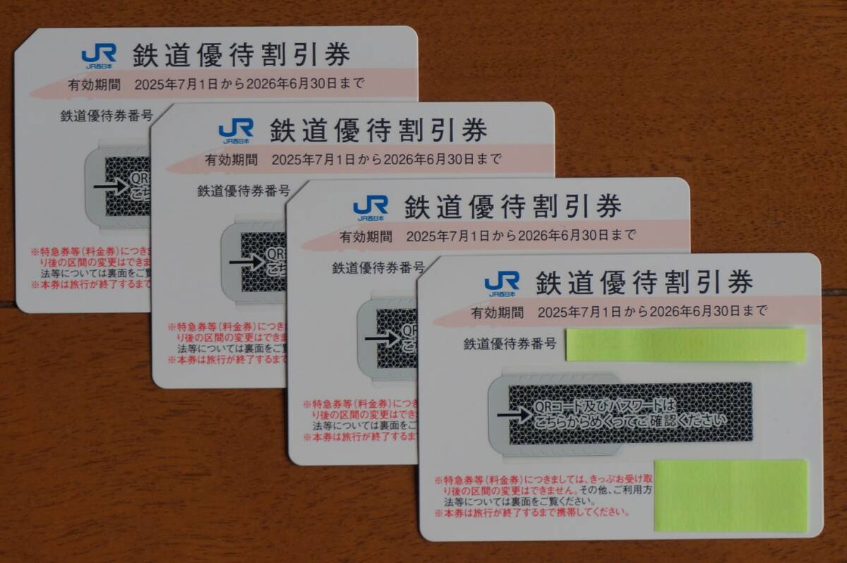 - ★JR西日本★株主優待鉄道割引券★有効期限:2026/6/30★4枚セット★