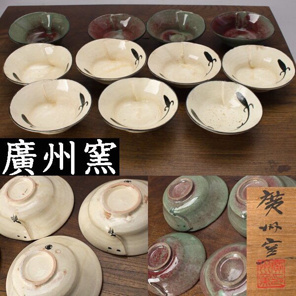 - 【千e855】廣州窯「高麗 食器」11客(7客と4客)共箱 粉引 絵高麗 向付 趙小守