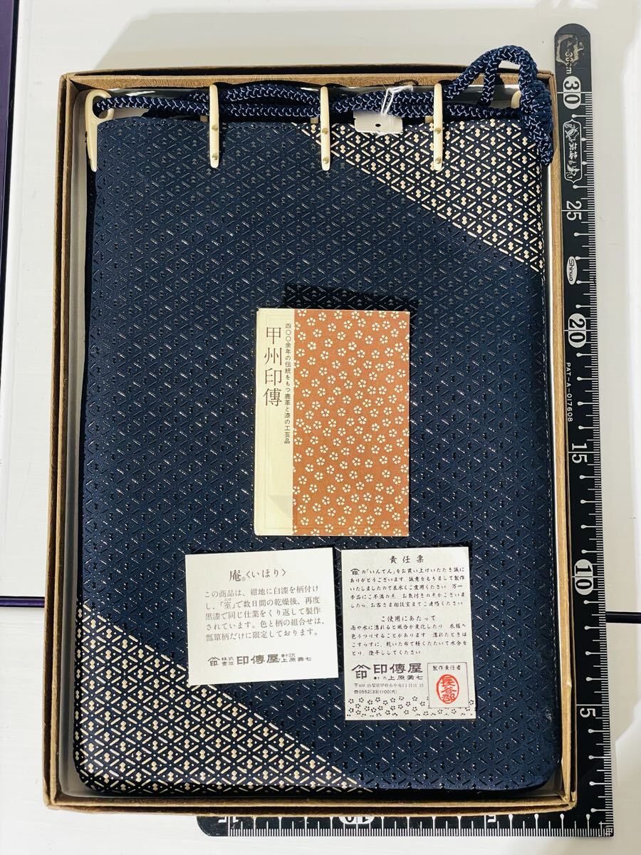 - 未使用 印傳屋 INDEN-YA ポーチ 巾着 和装小物 合切袋 巾着袋 鹿革 漆 甲州印伝 印伝 瓢箪柄 ひょうたん 上原勇七