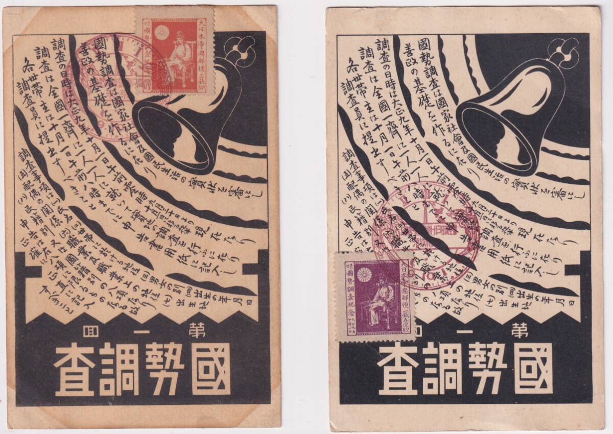 - 絵葉書/第1回国勢調査 2通 記念切手2種貼 特印