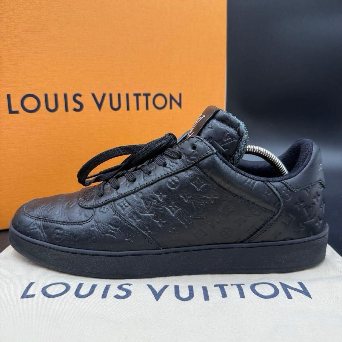 - 1円 【現行美品】LOUIS VUITTON ルイヴィトン リヴォリライン モノグラム エンボス メンズ スニーカー 靴 シューズ ブラック 黒 25.5cm相当