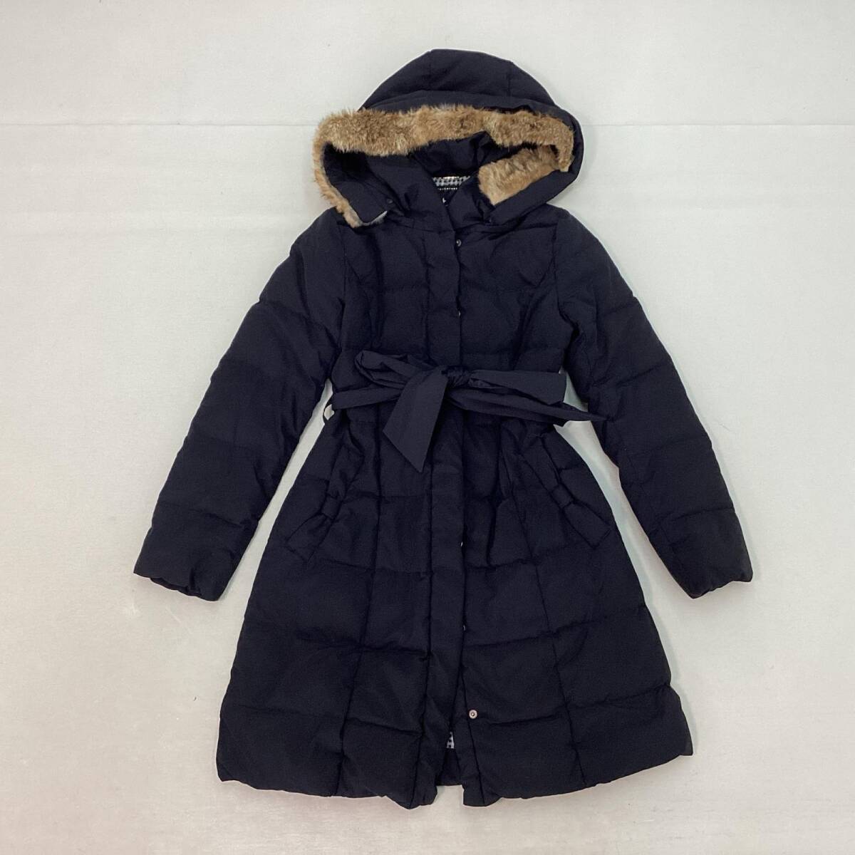 - ■ agnes b. アニエスベー ダウンコート ダウンジャケット ブラック サイズ38 レディース 裏地チェック柄 リボン取り外し可 ポリ 0.76kg