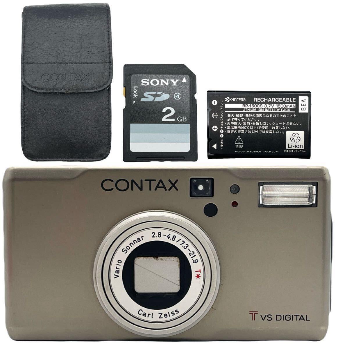 - 【鶴】CONTAX コンタックス T VS DIGITAL デジタルカメラ シルバー ケース付 動作未確認 ジャンク品 ◯ A566